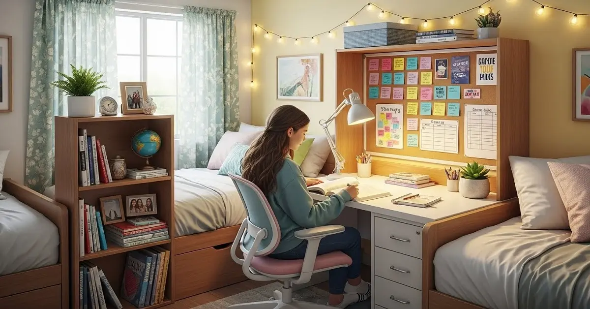 Design your study room in the girls’ hostel to motivate you and keep you focused. Though minimizing clutter remains necessary, strategic personal touches make you enjoy being in such environments as it inspires you to pursue higher achievements.